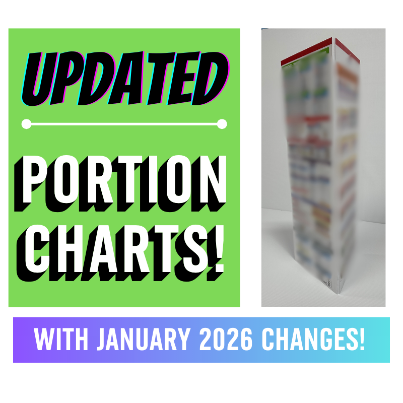 OUR 3-SIDED PORTION CHARTS ARE CHANGING THE GAME! Optimized design so you can SEE your portions with ease!