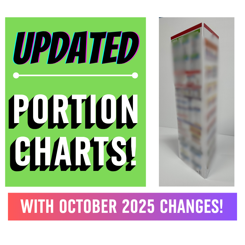 OUR 3-SIDED PORTION CHARTS ARE CHANGING THE GAME! Optimized design so you can SEE your portions with ease!