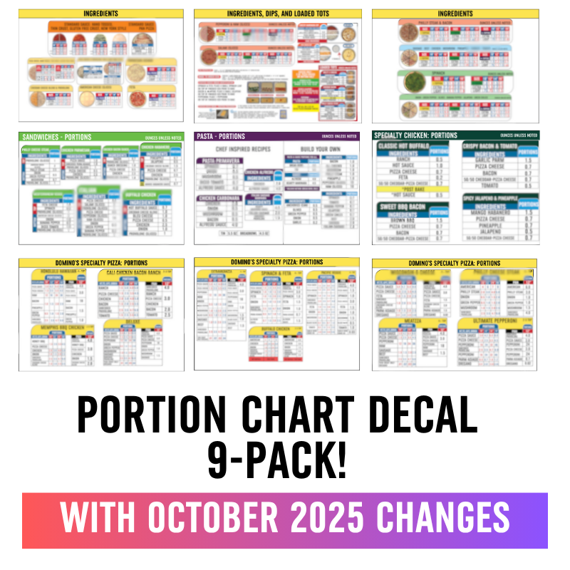 Our famous portion charts, now in 9 individual 11" x 7.5" Pieces! This pack comes with all 9 pieces, including all the portion information included in our standard portion charts!