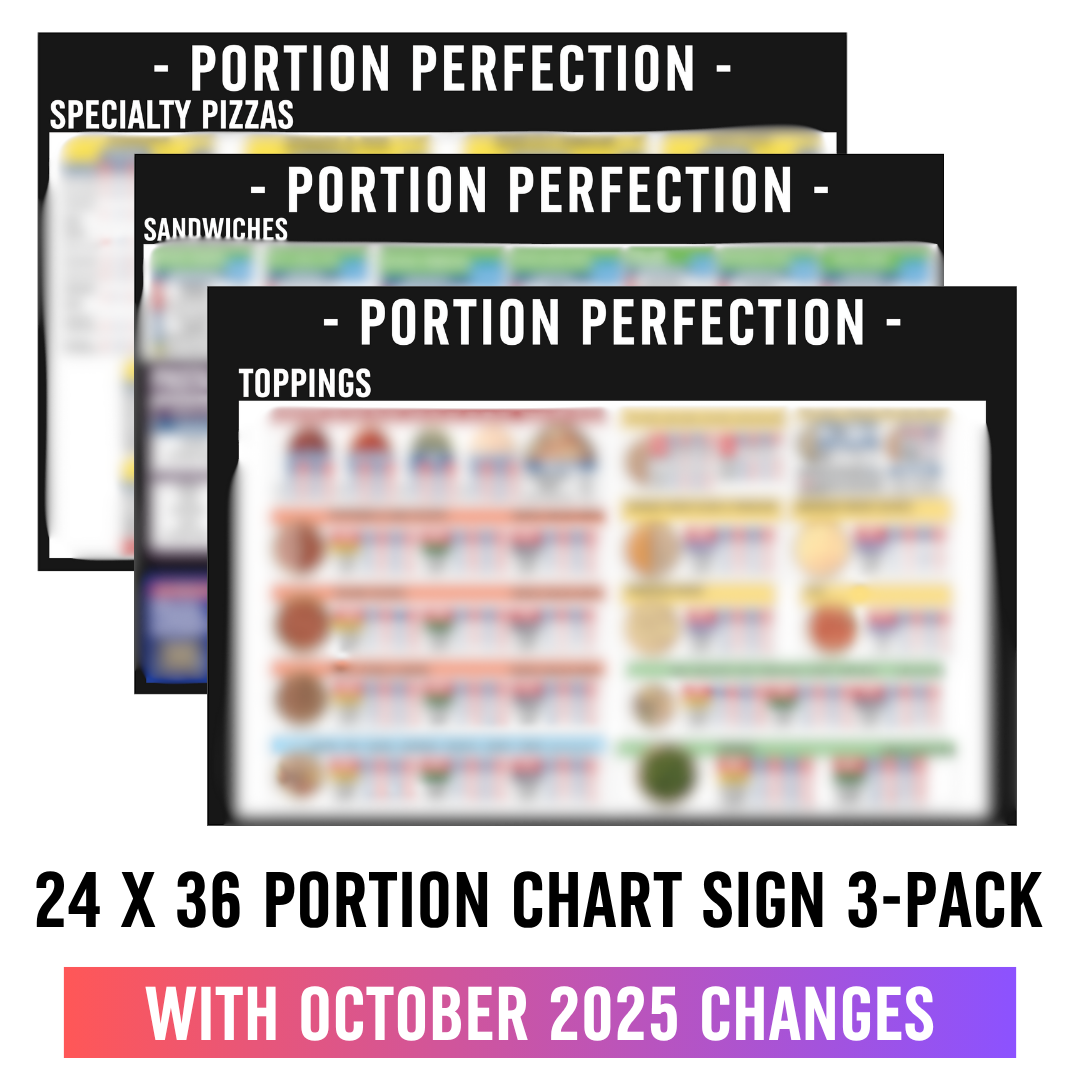 Our popular portion charts available as signs! These single-sided, lightweight, coroplast signs come with grommets in the top corners to make mounting easy! Order our 3-pack today!